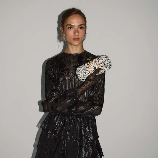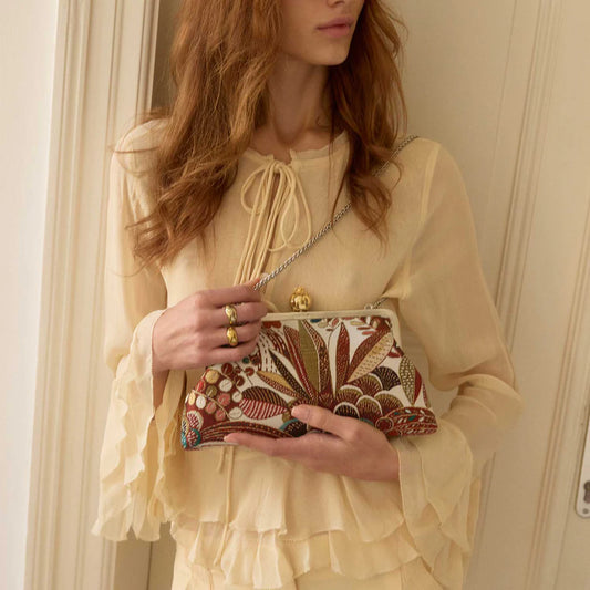 POMEGRENATE ON BLACK SATIN SMOCKING CLASSIC BAG