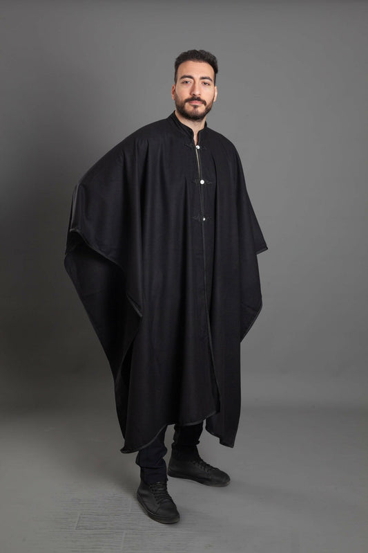 AZMY BLACK ENGLISH WOOL EMBROIDERED PONCHO