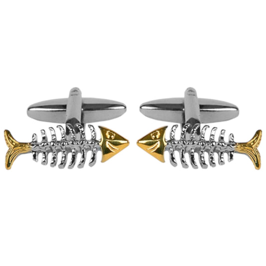 FISH SKELETON RHODIUM AND GOLD PLATED CUFFLINKS
