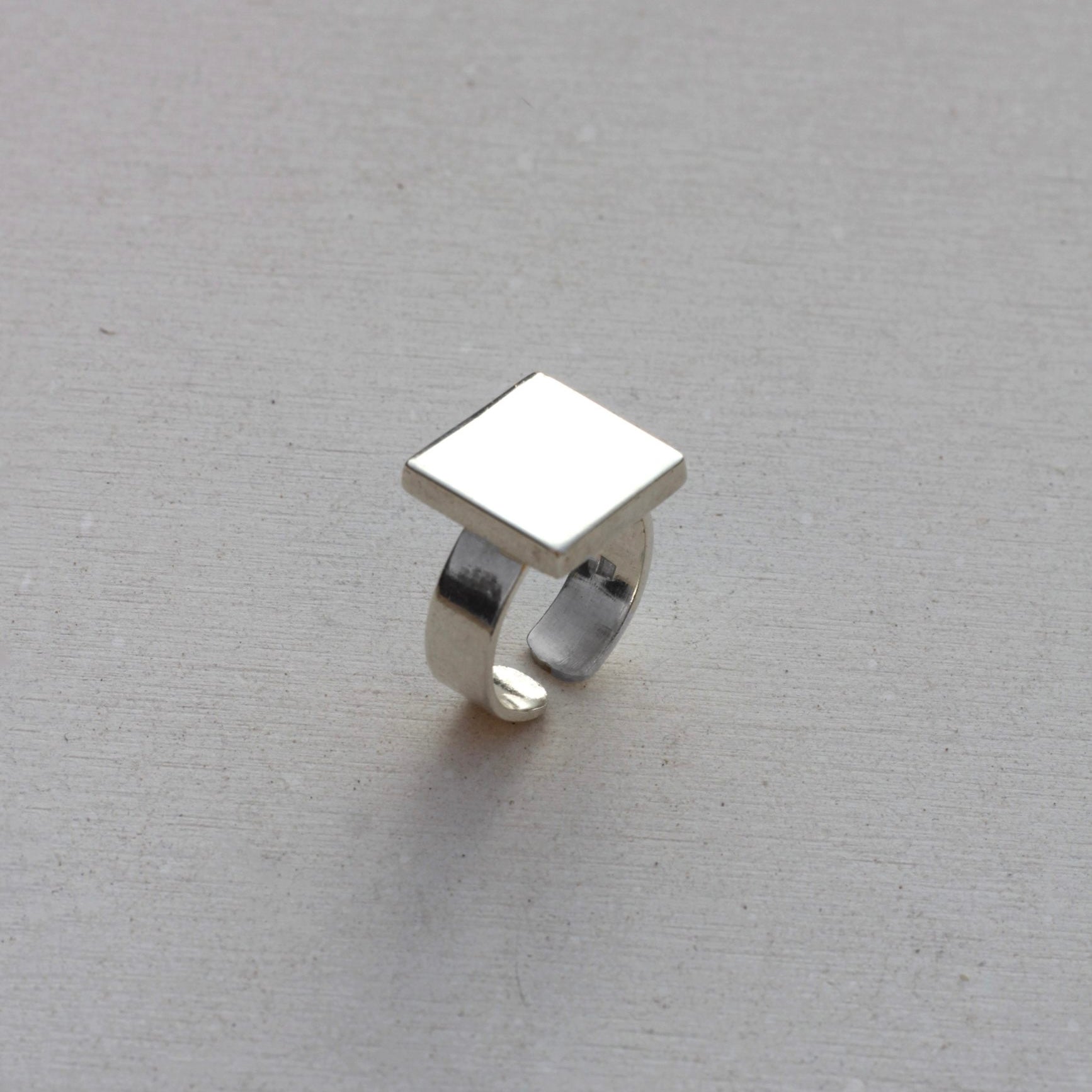 This 925 sterling silver ring features a clean, architectural square top set on an open, adjustable band. Polished to a high shine, the minimalist design highlights crisp lines and balanced proportions, offering a modern yet timeless aesthetic. Effortlessly versatile, this ring is perfect for everyday wear or as a subtle statement piece, embodying refined simplicity and contemporary elegance.