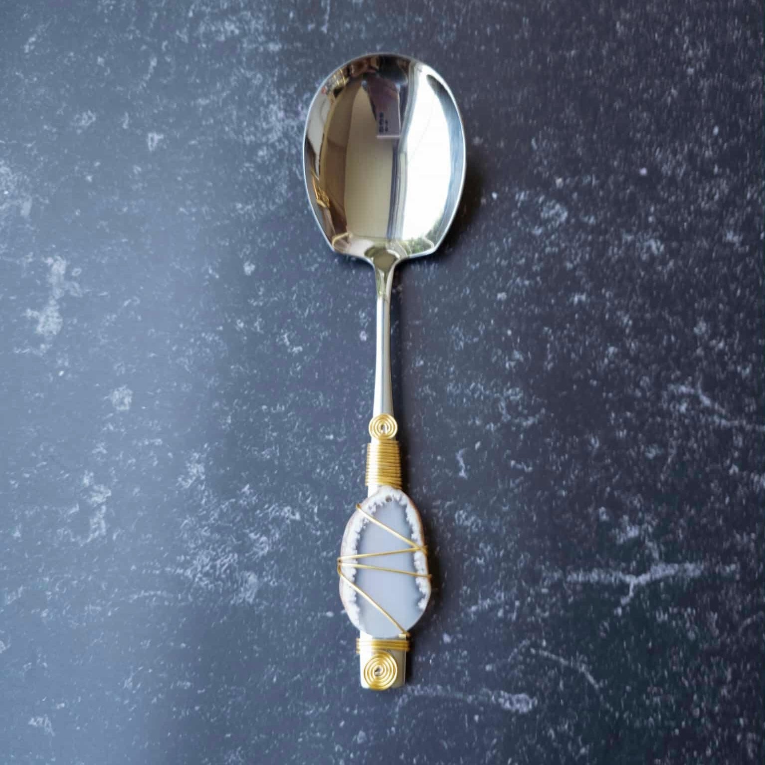 2. Clean your serving flatware with mild soap and warm water. Use a soft cloth to wipe down the metal and stones.